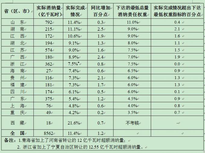 2.浙江省加上了宁夏自治区转让的12.55亿千瓦时超额消纳量。