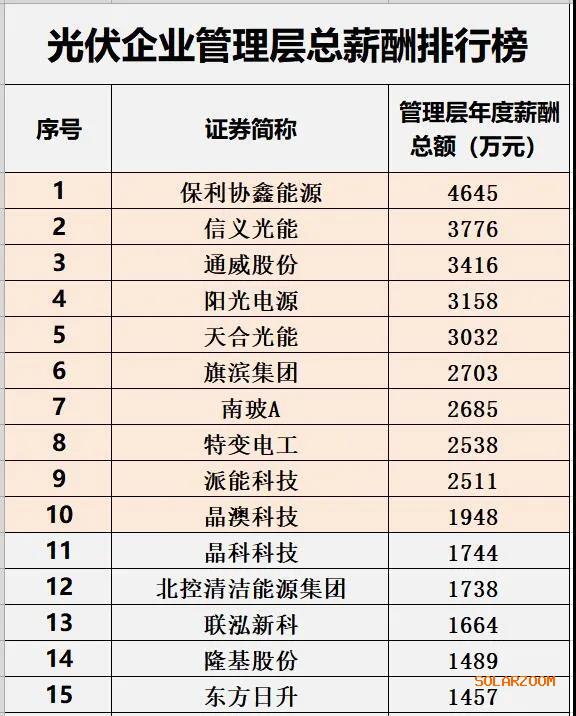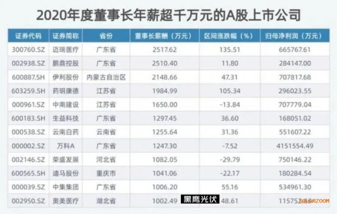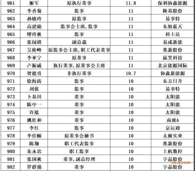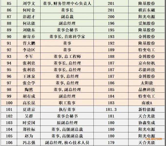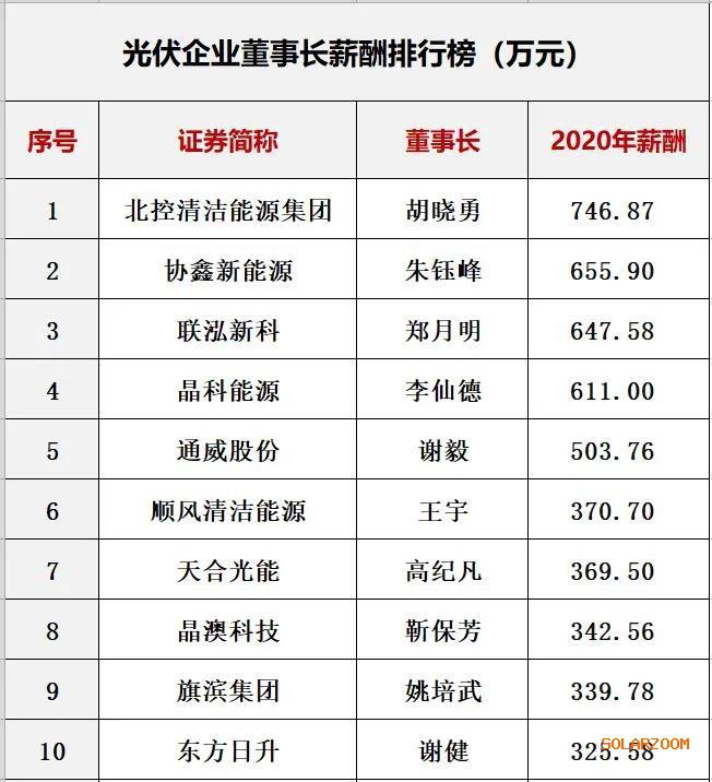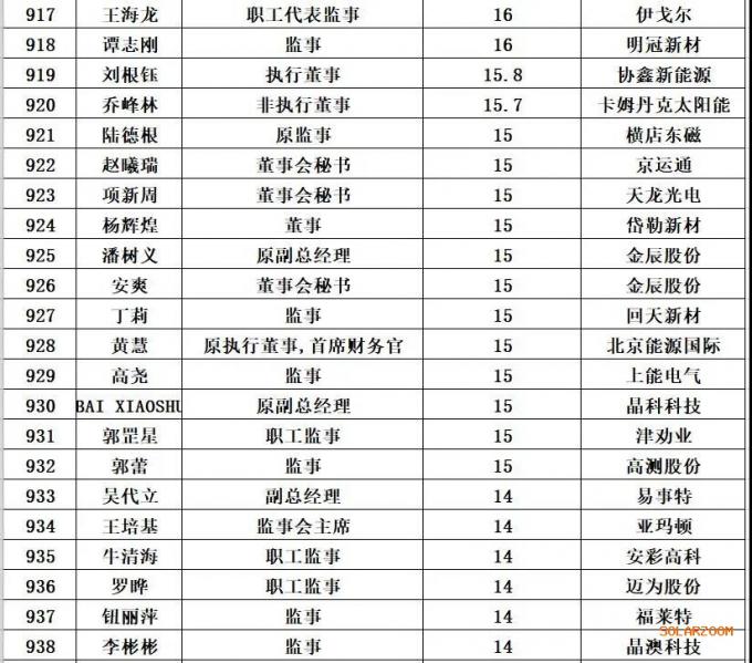 以下是中国光伏上市企业董事长薪酬排行榜,此文第二大部分附1064位光伏企业高管薪酬排行榜。