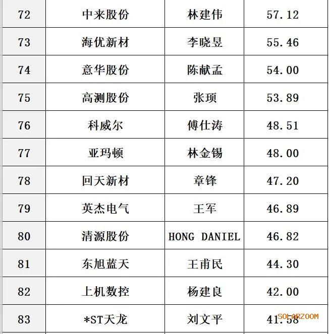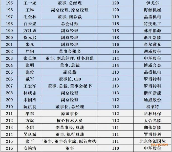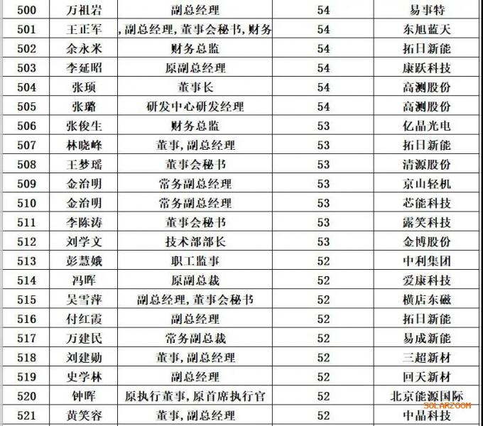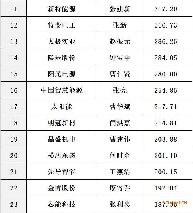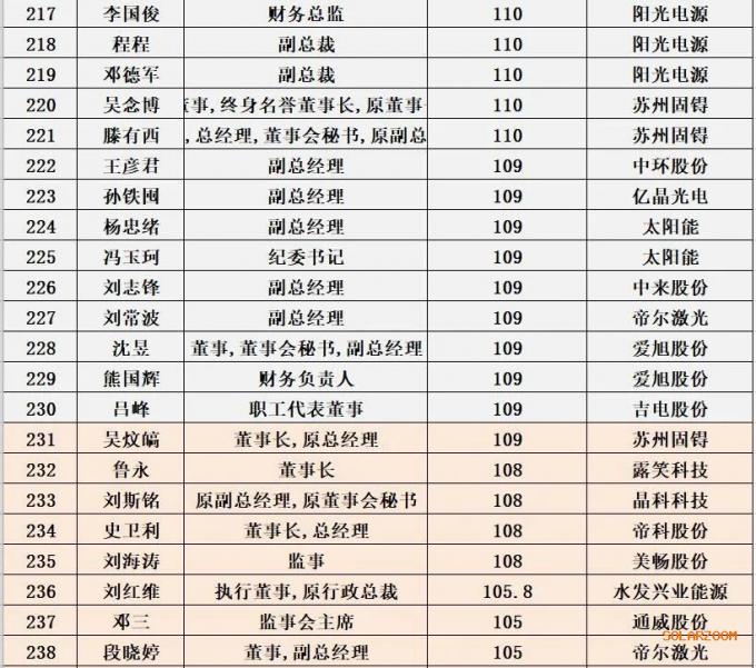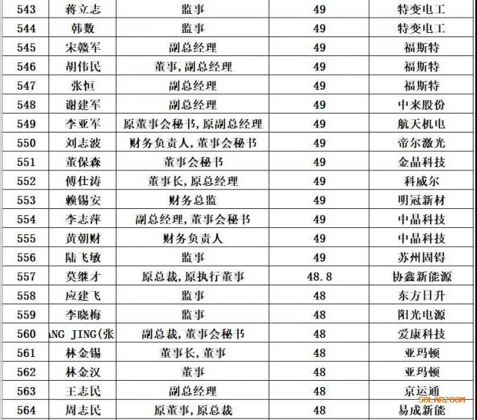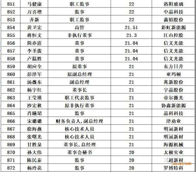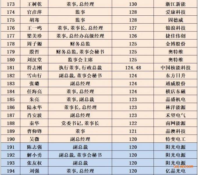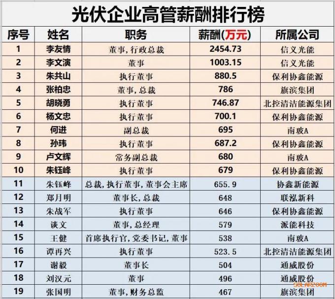 1.光伏玻璃老大信义光能的两位高管李友情和李文演的年薪高居总榜第一、第二位;