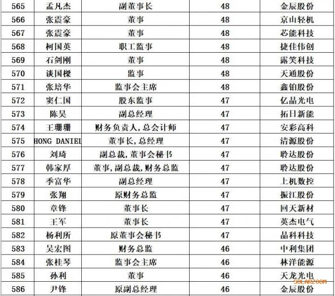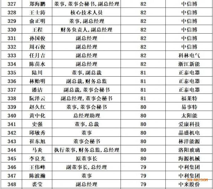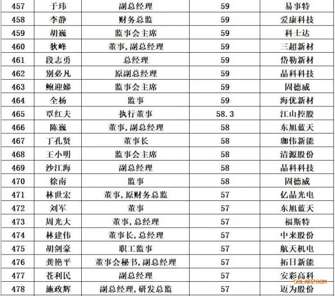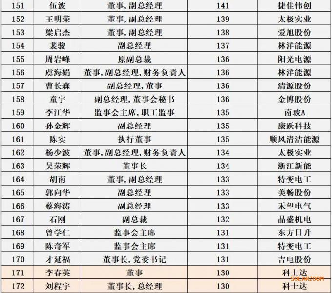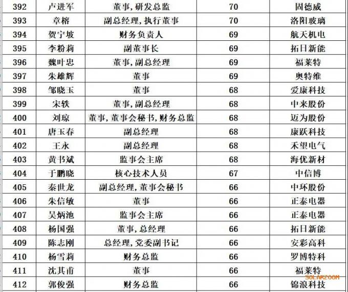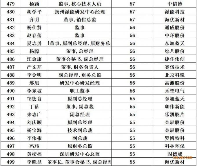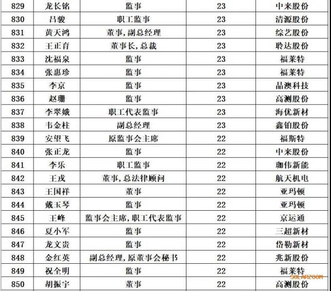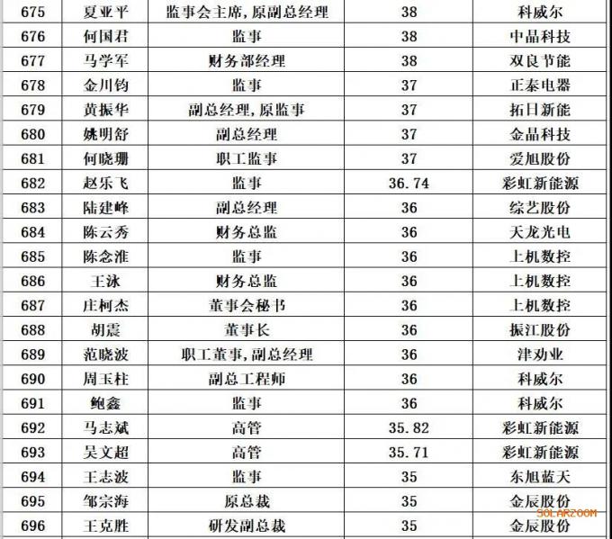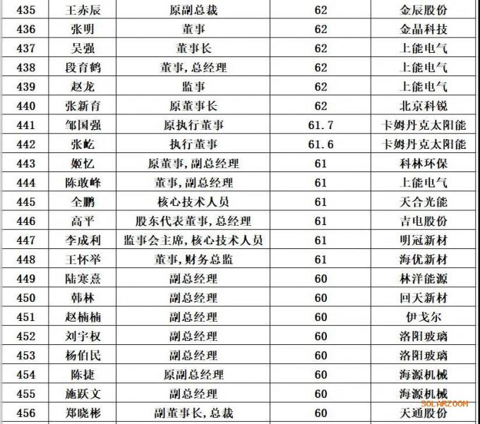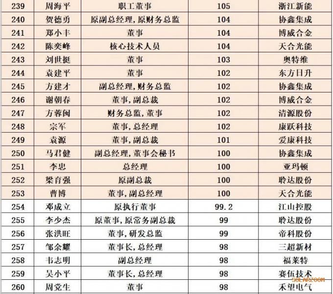 1.光伏玻璃老大信义光能的两位高管李友情和李文演的年薪高居总榜第一、第二位;