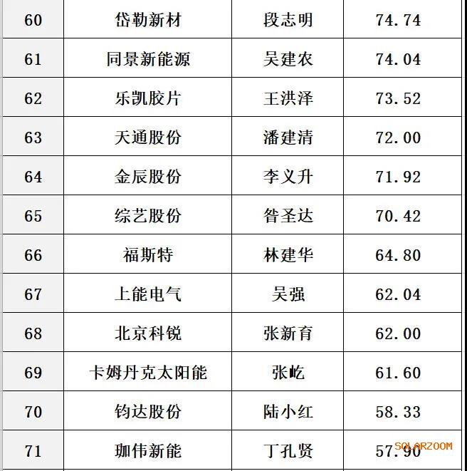 2.排在前五的企业还包括信义光能、通威股份、阳光电源和天合光能。