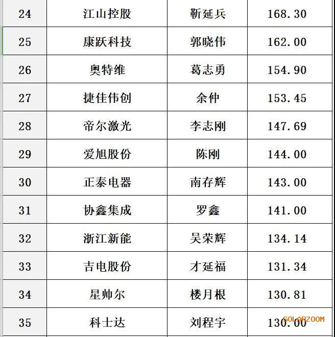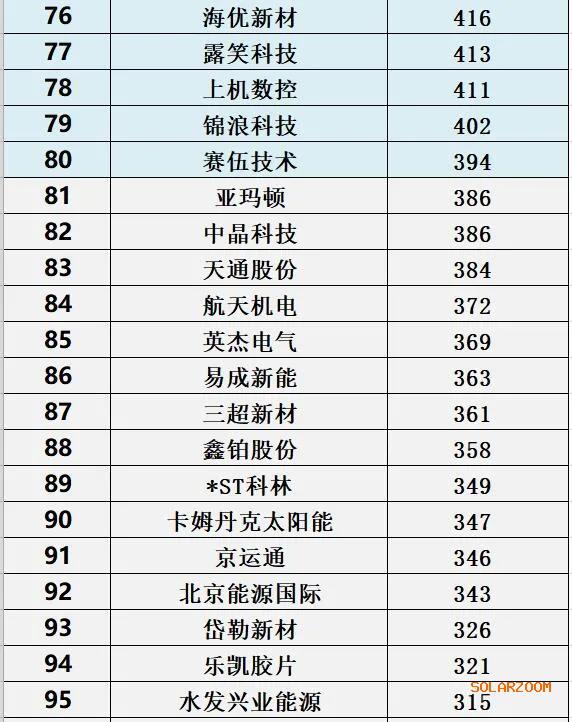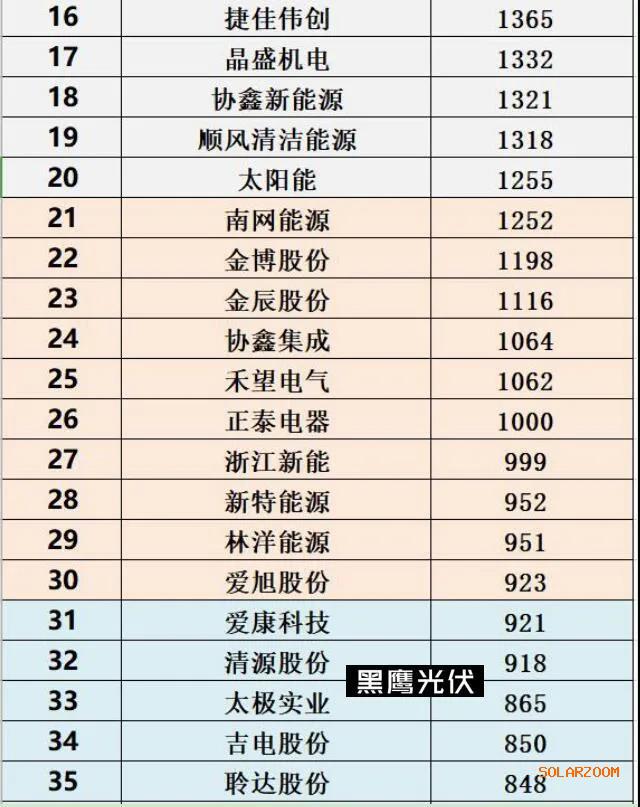 2.在前20位中,保利协鑫占据6席,南玻A占了3席,北控清洁能源集团占了2席,通威股份占了2席,旗滨集团占了2席;