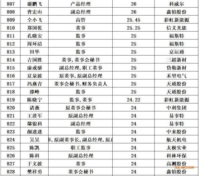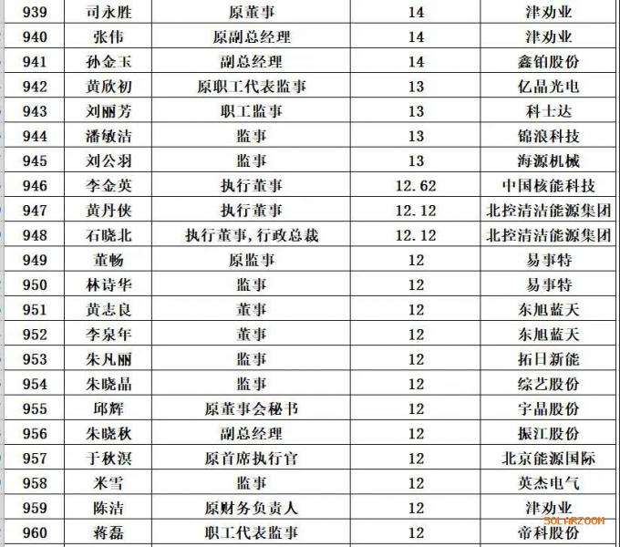 再看下表,这是1064位光伏企业高管的薪酬排行榜。我们可以发现: