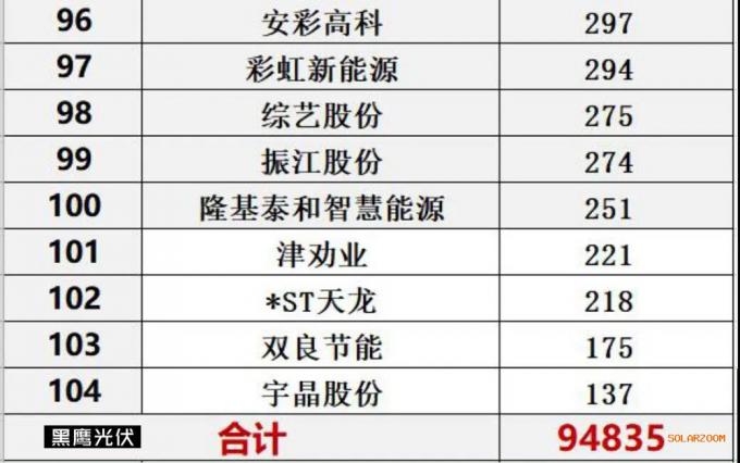 5.104家光伏企业管理层薪酬总支出合计94835万元。