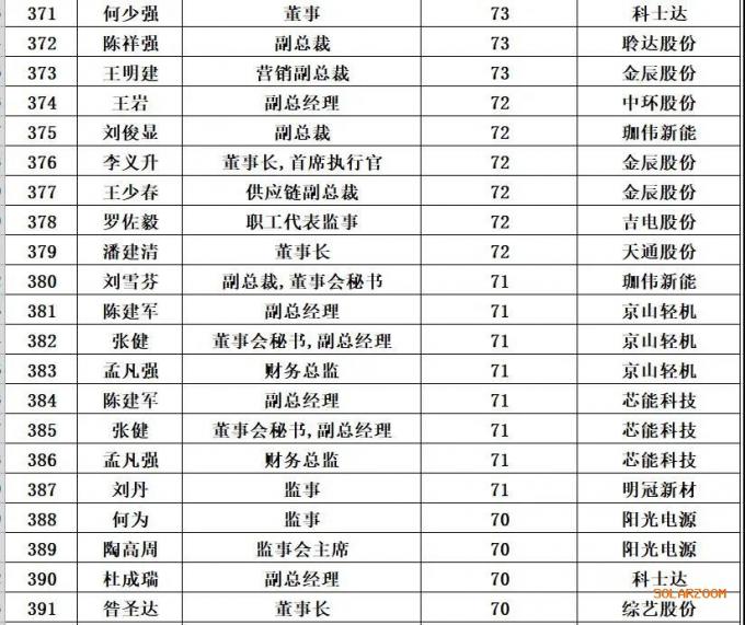 另据统计,2020年有16位光伏企业董事长没有从上市公司领取薪酬,包括中环股份董事长李东升、信义光能董事长李贤义、彩虹新能源董事长司云聪、派能科技董事长韦在胜、爱康科技董事长邹承慧等等。一般情况下,他们都是在控股公司,或者关联公司领取薪酬。