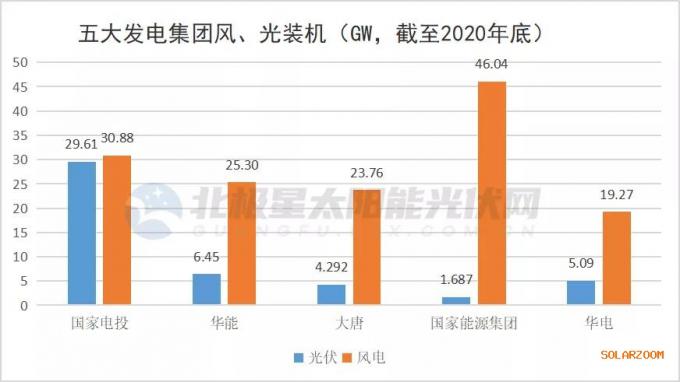 作为风电开发容量前十企业,从上图可以看出,五大发电集团中,风电累计装机均超过光伏。不过,可以看到的是,除光伏“巨无霸”国家电投外,大唐、国家能源集团、华能、华电纷纷开始发力光伏。