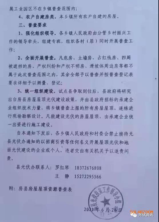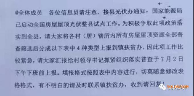 另外,通知提出:自本通知下发后,各乡镇人民政府和村委会禁止接待无县光伏办通知的以招商引资等任何名义开展屋顶光伏和地面光伏建设的企业或个人,违者交由有关机关予以追责问责。