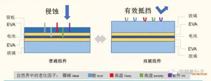 双玻组件的出现,似乎给了EVA克服天生缺陷的可能,由于玻璃的水蒸气透过率几乎为零,双玻组件的低透水率或者说零透水率让EVA抗水解能力不再成为问题。