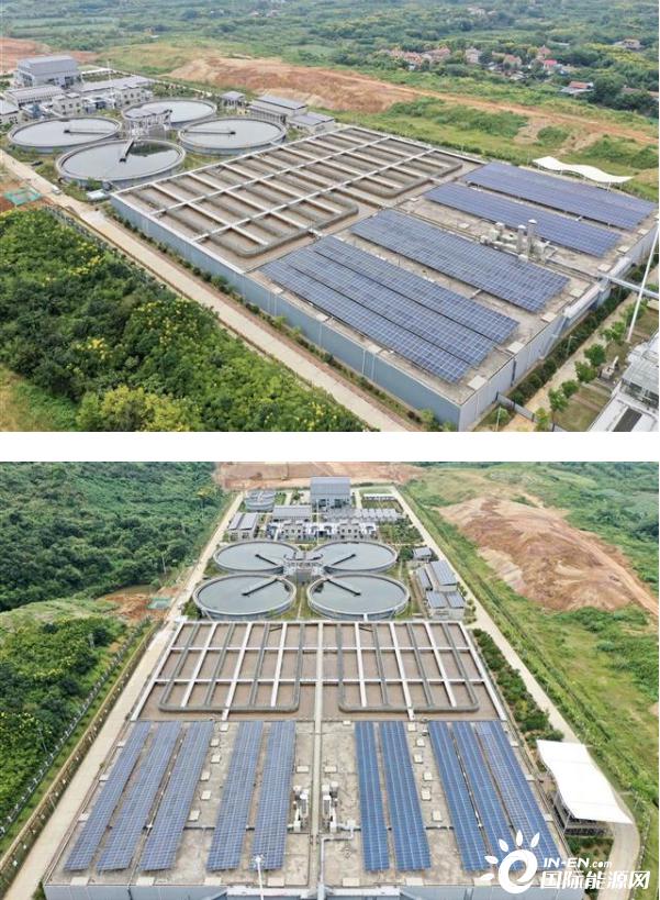 9月7日,俯瞰武汉江夏污水处理厂,厂区内屋顶、沉淀池、生化池上布满光伏发电板,正在静悄悄地将太阳能转为电能。该厂是武汉市第一个实现全厂光伏覆盖的污水厂,其光伏发电系统年发电量为150万度,占整个厂区总用电量的18%,为污水处理降低了运行成本。