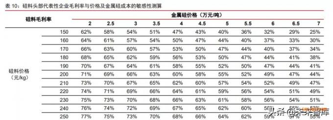 硅料盈利仍将维持高位。硅料价格大涨显著抬升了厂商盈利能力,头部厂商毛利率一度从年初45%大幅提升至Q3高点的75%左右;但金属硅价格高企在一定程度上侵蚀了企业利润。我们测算目前硅料和金属硅价格下,头部企业毛利率或达60%左右,环比Q3高点有所下降,但仍处于高盈利水平,预计2022年硅料优质企业仍将保持高盈利状态。此外,随着部分头部厂商新产能释放,有望量价齐升延续业绩高增长。