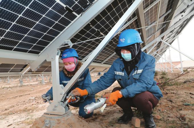 11月20日,国电投山西铝业20MW分布式光伏发电项目现场,工人们正在为预埋件进行防锈涂刷。该项目位于原平市东城区,总投资7301万元,总占地面积536亩,装机规模为20MW,项目建成后年平均发电量为2611万千瓦时。据悉,该项目于8月20日开工建设,11月11日1#、2#逆变器并网发电,11月15日3#、4#、5#、6#逆变器具备并网发电条件。整个项目将于近日并网发电。
