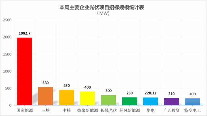 从招标规模来看,国家能源集团以1982.7MW排名第一,三峡集团530MW列第二,中核集团则以450MW位居第三。