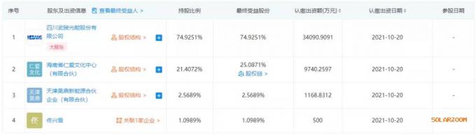 安徽阜兴新能源科技有限公司大股东为四川武骏光能股份有限公司。相关资料显示,四川武骏光能股份有限公司系上市公司四川和邦生产科技股份有限公司控股的全资子公司,成立于2010年12月,是一家以浮法玻璃、工程玻璃经营为主营业务的大型企业,公司新建有两条高档浮法玻璃生产线、一条镀膜生产线和一座工程玻璃深加工车间。