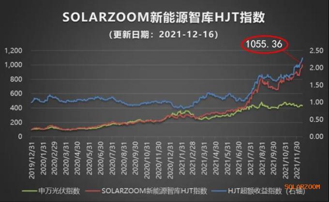 12月16日收盘,SOLARZOOM新能源智库HJT指数首次站上1000点,报1005.36!这一里程碑式的成绩意味着,SOLARZOOM新能源智库HJT指数自2020年2月13日推出以来(指数发布原文),在不到2年的时间里实现了10倍增长!