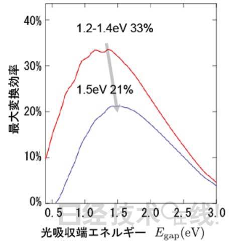 在无机半导体太阳能电池方面,Shockley和Queisser于1961年宣布其转换效率的理论极限值约为30%,近年的实际效率已接近这一数值,无机太阳能电池的研发最近正朝着通过采用多结型及集光型等Shockley-Queisser理论中未曾考虑的构造来提高效率的方向发展。