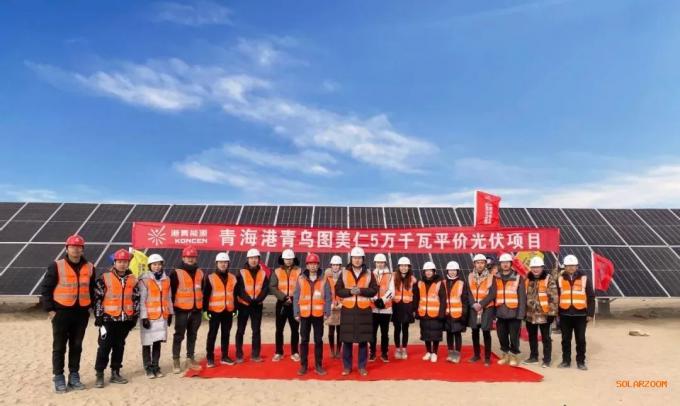 2021年12月30日,青海港青乌图美仁50MW平价光伏项目成功并网发电。在格尔木市乌图美仁乡,一排排整齐的深蓝色光伏组件反射着耀眼的光芒,正源源不断地将太阳能转化成为电能,通过电网向外输送绿色能量,将清洁能源送往千家万户。