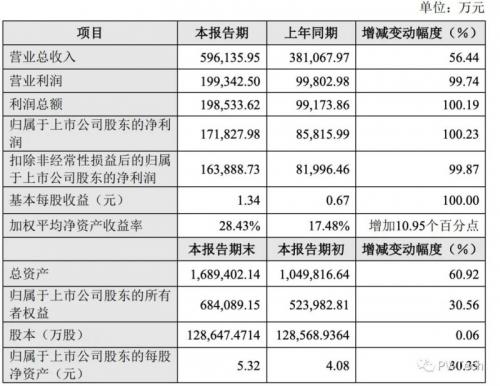 3月8日晚间,晶盛机电(300316.SZ)发布2021年度业绩快报,报告期内,公司营业总收入约59.61亿元,同比增加56.44%;归属于上市公司股东的净利润盈利约17.18亿元,同比增加100.23%;基本每股收益盈利1.34元,同比增加100%。