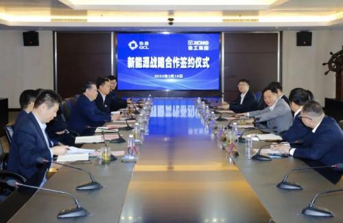 徐工集团与协鑫能科举行新能源战略合作签约仪式,徐州工程机械集团有限公司董事长、党委书记邱成,协鑫(集团)控股有限公司董事长朱共山,出席并见证。此举标志着双方依托各自的技术、市场及资源等优势,未来将在换电重卡产品开发、换电站建设等领域进行长期战略合作。