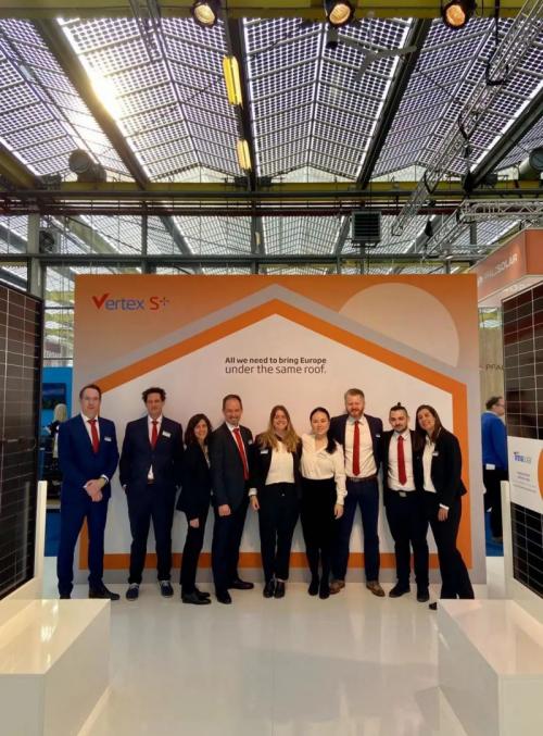4月12日,天合光能携分布式全新产品系列Vertex S+亮相荷兰Solar Solutions International展会。作为欧洲最大型、最专业的光伏展会之一,Solar Solution International展会为欧洲乃至全世界最有影响力的太阳能盛会。在展会上,天合光能重磅发布了面向欧洲工商业及户用屋顶市场的全新产品Vertex S+。此次新品基于先进210至尊技术平台研发,组件最高功率突破425W+。将“小身材,更大能量”完美呈现给了欧洲市场。