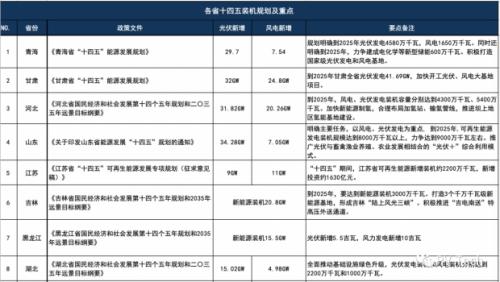 经初步统计,共有23省的公开文件中明确提出风电、光伏的十四五规模。(3-4月各省光伏政策复盘:能源规划、竞配、项目申报等)