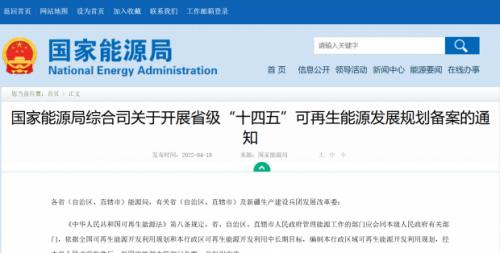 4月18日,国家能源局综合司下发《关于开展省级“十四五”可再生能源发展规划备案的通知》,要求各省报备本地区的“十四五”可再生能源发展规划。