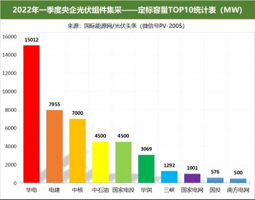据统计,一季度招标容量排名前10的央企合计容量高达45.4~47GW,占一季度定标容量的95.6%以上。