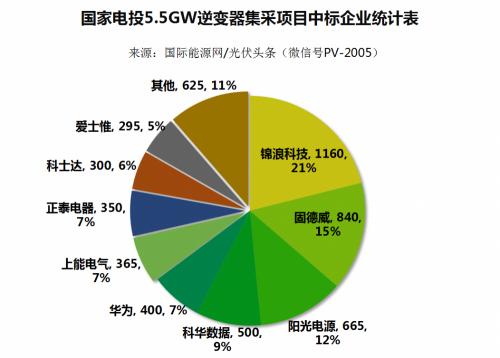 在技术无法建立绝对优势的大背景下,众多光伏逆变器企业通过差异化的产品竞争,确立自己的市场优势。除此之外,平价上网时代,央企招标这个销售渠道,不仅意味着出货量得到保证,而且意味着与央企建立长久、稳定的合作关系,在市场竞争中占据有利地位。因此央企采购中标情况成为行业竞争格局的风向标。