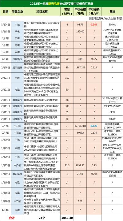 今年一季度华为、阳光电源、特变电工、上能电气、爱士惟、固德威、科华数据、锦浪科技等逆变器企业共享央企集采大市场,各大企业所占的份额,确定的中标价格对于逆变器企业,甚至整个行业格局影响如何,国际能源网/光伏头条将持续关注!