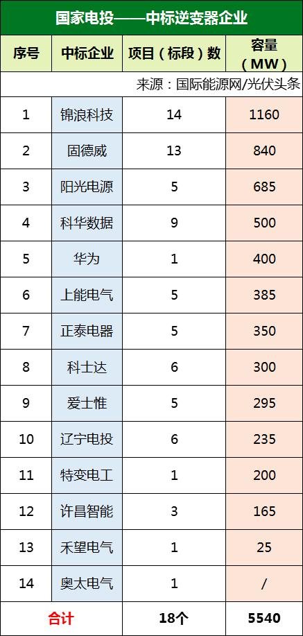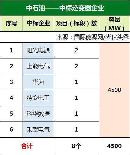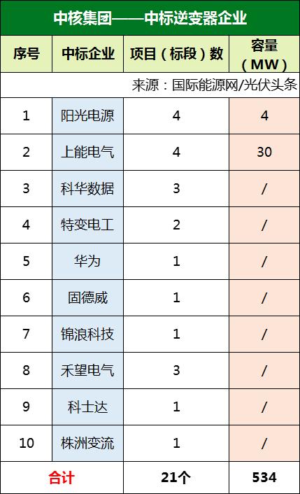 作为光伏逆变器领域的龙头企业,华为一季度表现出色,中标中国电建、华电集团、中广核、国家电投、中石油、中核(南京)等央国企9个项目(标段),确定中标容量1500MW。