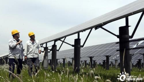 5月14日,在滨州市沾化区富源街道的华能沾化清风湖风光同场项目区,工人们进行光伏电站的日常巡检。