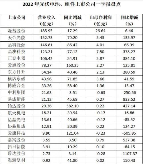 在20家已经披露一季报的光伏电池、组件企业中,14家企业营收、净利润双双实现同比增长,6家企业净利润出现同比下滑。来自中国有色金属工业协会硅业分会等机构的最新观点显示,相较于一季度阶段盈亏相抵的状态,电池厂目前已产生相当盈利。