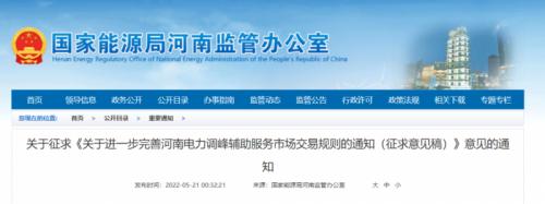 近日,国家能源局河南监管办印发《关于进一步完善河南电力调峰辅助服务市场交易规则的通知(征求意见稿)》。通知提出,根据电力运行实际需要,在原有电力调峰辅助服务市场交易规则基础上,决定对参与辅助服务市场交易主体范围和有偿调峰基准等进行修订完善,将省内10(6)千伏及以上电压等级并网的分散式风电、分布式光伏(不含扶贫项目)纳入市场主体范围,参与河南电力调峰辅助服务市场管理,按现行交易规则中新能源电厂调峰费用分摊办法进行辅助服务费用分摊。根据市场发展情况,逐步将所有新能源发电企业纳入辅助服务市场交易主体范围。