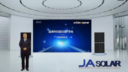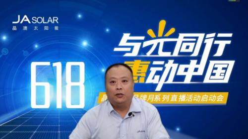 启动仪式上,晶澳科技副总裁李栋表示,“6月是晶澳科技的品牌月,我们在6月9日-6月19日期间安排了40多场直播活动,将以最优惠的价格回馈客户,以最优质的产品服务客户。我们相信,有广大信赖、支持我们的客户,有众多经销商伙伴的一路同行,我们一起迎接更多更好的机遇,一定能够开创互利共赢的新局面。”