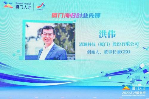 鹭岛花竞艳,凤凰自择栖。“2022厦门人才服务月”暨“鼓励留学人员来厦创业工作规定”颁布20周年庆启动仪式于今天上午举行。启动仪式现场公布首批十位厦门海归创业先锋代表名单。清源科技董事长洪伟受邀出席此次活动,并荣获“厦门海归创业先锋代表”。