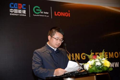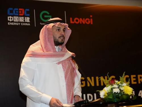 隆基MEA&CA大区总裁贾超出席此次签约仪式,并发表讲话,他说:“感谢合作伙伴对隆基的信任与支持,我们期待为当地伙伴提供具备更高回报价值的清洁能源产品及方案,为沙特2030愿景所设定的目标贡献力量。”