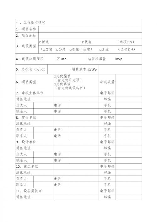 (二)项目应用技术类型包括建筑光伏屋顶、光伏幕墙和光伏建筑构件等;光伏组件类型包括晶硅、铜铟镓硒薄膜系列等。