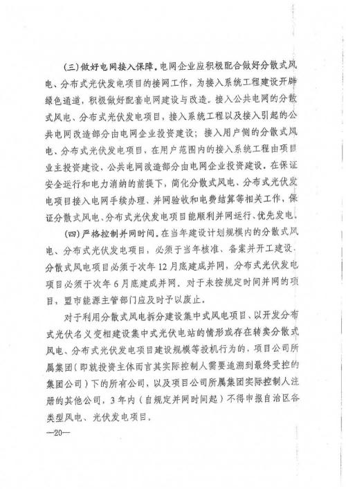 为了确保项目尽快落地实施,对分散式风电5万千瓦建设规模、分布式光伏发电3万千瓦建设规模进行项目公开优选,单个分散式风电项目建设规模不应超过5万千瓦,单个分布式光伏发电项目建设规模不应超过0.6万千瓦。