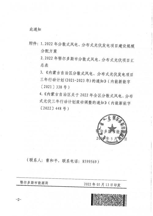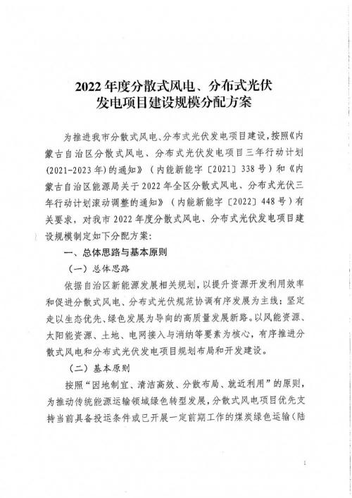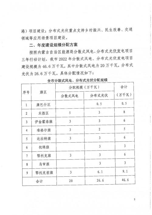 2.鄂尔多斯市能源局关于2022年分散式风电、分布式光伏发电项目建设规模分配方案的通知(鄂能局发〔2022〕98号)