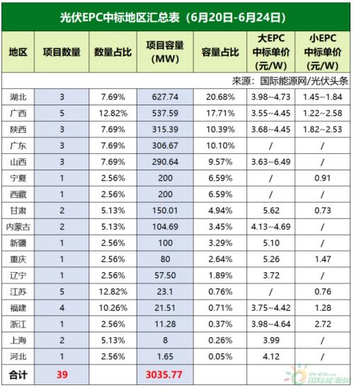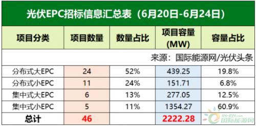 其中,分布式大EPC项目有24个,招标容量最大项目为国华投资国能国华(广西)新能源有限公司钦南区整区屋顶分布式光伏项目(一期)EPC总承包工程公开招标项目。