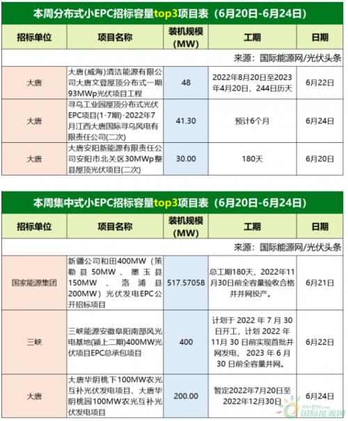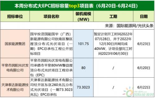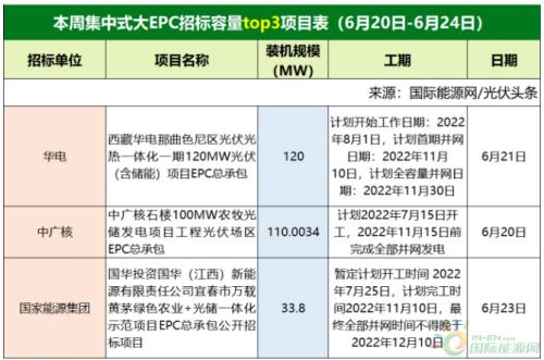 此外,本周分布式、集中式小EPC招标容量TOP3项目,具体情况如下:
