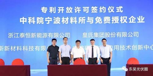 皇氏集团与中国科学院宁波材料技术与工程研究所现场签订专利开放许可协议,双方将在光伏产业相关技术研发和成果转化方面正式建立战略合作关系。