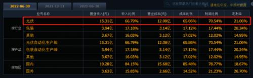 报告期内,光伏智能装备业务实现营业收入15.31亿元,同比增长53.21%。截止2022年6月30日,公司在手订单41.56亿元,同比增长37.61%。