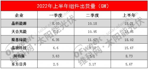 至此,我国排名前六的组件企业上半年组件出货量悉数出炉。一季度拿下全球组件出货量第一的晶科能源能否“守擂”?两连冠隆基绿能能否实现反超?都是业内外人士关注的焦点,一起来看看吧!
