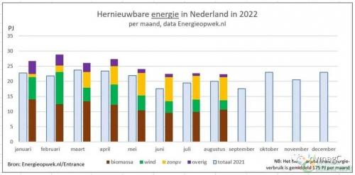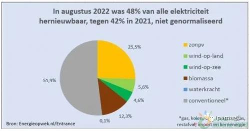 综合而言,可再生能源占比为48%,而2021年8月为42%。法国气候协议(Klimaatakkoord)设定的目标是,到2030年实现可再生能源占比达到70%。