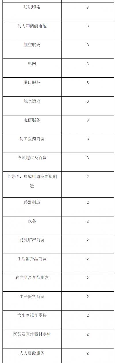 中国企业500强的行业结构持续调整。榜单中,黑色冶金、石化及炼焦分别增加6家和4家,工业机械及设备制造业、动力和储能电池业、多元化投资业均增加3家,化学原料及化学品制造业、计算机及办公设备业分别增加2家。生产性服务业整体复苏较好,公路运输、物流及供应链、综合商贸分别增加2家。