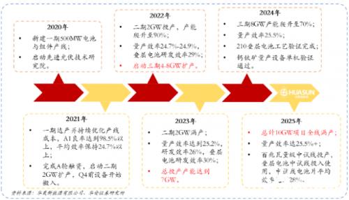 在此基础上,华晟新能源还在进一步研发钙钛矿叠层工艺,计划于2022年实现叠层电池研发效率29%,2023年实现叠层电池研发效率30%,2024年实现210叠层电池工艺验证,2025年实现叠层电池中试线产品平均效率达到28%。