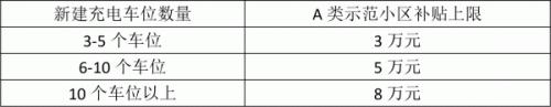 2.支持共享充电示范小区建设。示范小区包括A类示范小区和B类示范小区。A类指利用小区自有车位新建共享充电设施的小区,原则上应是2005年前建成的小区,需符合三方面要求。一是规模性要求,充电设施应在小区扩建的停车位上建设,扩建的充电停车位应不低于3个。二是公共服务要求,充电停车位应采用分时共享智能有序调节模式。三是规范管理要求,由充电企业负责建设和运营管理,小区业主大会、物业服务企业应给予支持,并与充电企业签订三方协议,以明确三方责任义务。B类指利用小区周边300米以内充电设施共享充电的小区,小区与小区周边政府机关或企事业单位停车场签订车位错峰共享专属5年以上长期协议后,共享车位充电设施总量10个以上或新建充电设施5个以上的,可申报B类示范小区。2022年及之后建成经认定的A类示范小区,给予充电设备金额50%的财政资金补贴,与电网企业结算电价执行居民电价标准;对支持A类示范小区建设的小区业主大会给予一次性补贴(补贴标准详见下表)。