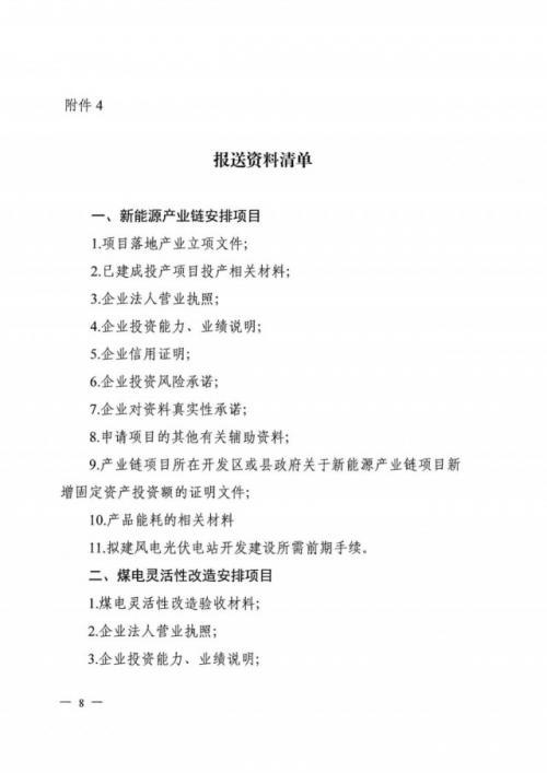 根据文件要求,产业链申报范围为2021年1月1日至2022年9月30日在山西建成投运且未享受过风光指标的新能源产业链项目。其产业链范围包括光伏方面的硅棒、硅片、电池、组件、逆变器、光伏发电系统等上中下游以及玻璃、边框、金刚线、浆料、光伏设备等辅材与设备制造业。此外,风电、储能各环节产业链制造业也包含在内。