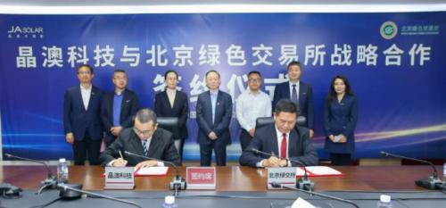 北京绿色交易所是中国碳市场重要的参与者、建设者和推动者。晶澳科技与北京绿色交易所建立战略合作,强强联手,将在自愿减排市场及企业低碳发展等多个领域开展深度合作,联合研究国内外碳减排市场,探索光伏行业应对气候变化的路径,破解行业碳中和痛点,打造光伏行业绿色发展典范。