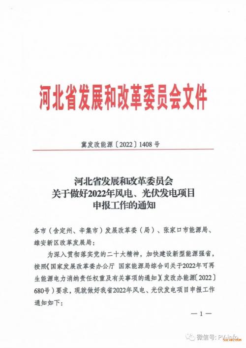 近日记者了解到,近日河北省发改委发布了《关于做好2022年风电、光伏发电项目申报工作通知》。